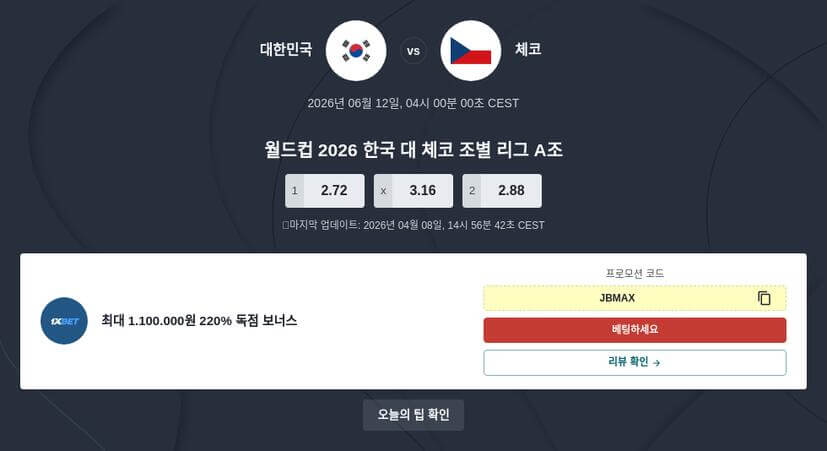 2026년 6월 12일 월드컵: 한국 대 체코 베팅 사이트 추천